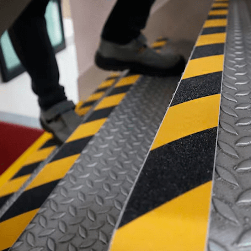 Se sugiere para aplicacar en escaleras, rampas de carga, plataformas, superficies irregulares, como placas de seguridad de grado diamante, o superficies planas con remaches o cabezas de tornillo.
