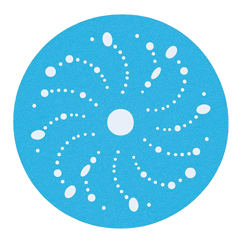 La mezcla del mineral de óxido de aluminio con minerales de cerámica se complementan para obtener el máximo rendimiento abrasivo. Poseen un patrón de perforaciones múltiples universal que proporcionan una excelente extracción de polvo. El recubrimiento anti-carga, que está sobre la superficie del grano, evita que el polvo y los residuos saturen la superficie de corte del disco, prolongando la vida del abrasivo. Al ser Hookit™ se facilita notablemente el cambio de disco. Nuestro disco abrasivo Blue Hookit™ de 3M está diseñado para tener el mayor rendimiento dentro de su categoría en poder de corte y vida útil para las áreas de desabolladura y preparación de pintura. Se trata de una nueva mezcla de mineral de óxido de aluminio de primera calidad con minerales cerámicos tratados. Poseen un diseño universal en el patrón de perforaciones que proporcionan una mejor extracción polvo. El diámetro del disco es de 152,4mm.