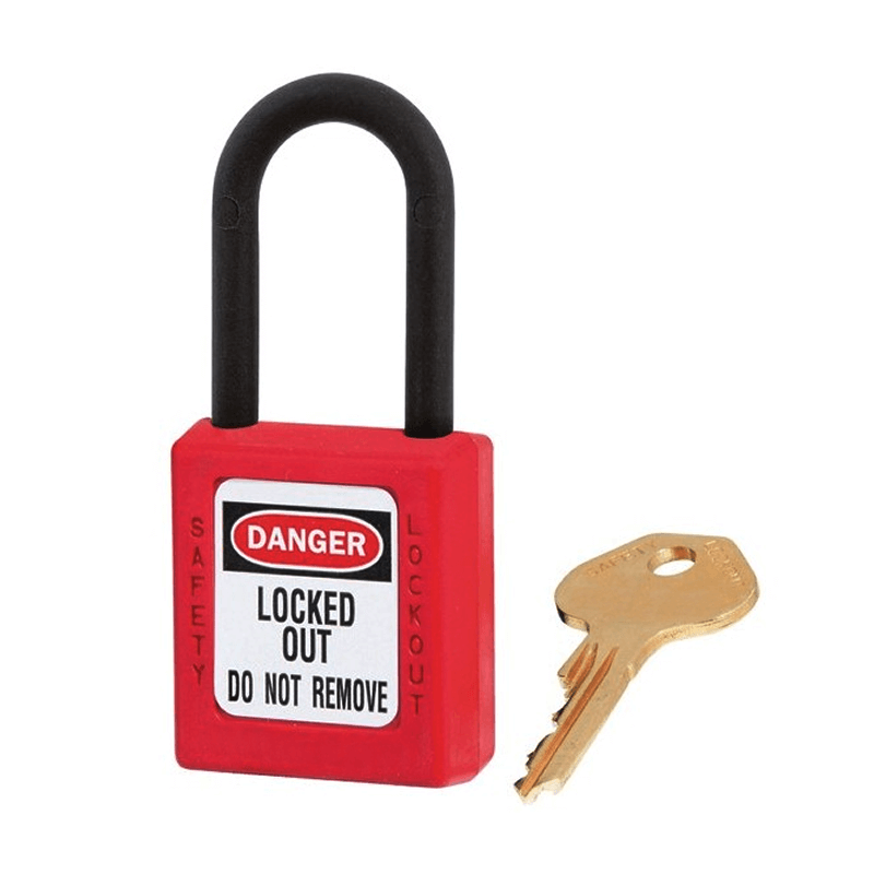 Candado plástico dieléctrico de 44mm de alto y 38mm de ancho. El arco de plástico ayuda a prevenir la electrocución, y el arco eléctrico, también evita el paso de la corriente eléctrica del arco a la llave. Todos los componentes son antiestáticos y antimagnéticos: plástico, cobre Y latón.Cumple con la normativa de OSHA. La retención de la llave garantiza que el candado no quede abierto.