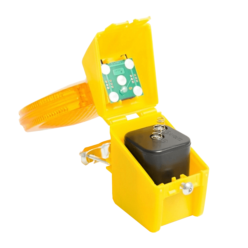 Faro para balizamiento nocturno de obras u obstaculos. En modo fijo puede utilizarze para canalizar vehiculos. Se enciende oprimiendo un botón interno, introduciendo la punta de un clip a través de un orificio frontal. Una vez encendida solo destella cuando no hay luz ambiente (60 destellos por minuto). Luz fija opcional que se acciona con un segundo botón frontal. Esta funcionalidad es una alternativa económica y efectiva para canalizar tránsito de manera ordenada sacrificando consumo de batería. Con luz fija la autonomía es de 300 horas. Medidas: 340x185x120mm. Peso: 550 gramos Origen: Alemania Marca: Nissen. Alimentación: 1 Bateria 6V 4R25 descartable (no incluida). Autonomía: 1200 horas. Intensidad de luz: 15 candelas. Óptica: policarbonato con lente Fresnel 180mm de diámetro. Fijación: Herraje con tuercas antirrobo. Espacio máximo: 53x50mm.