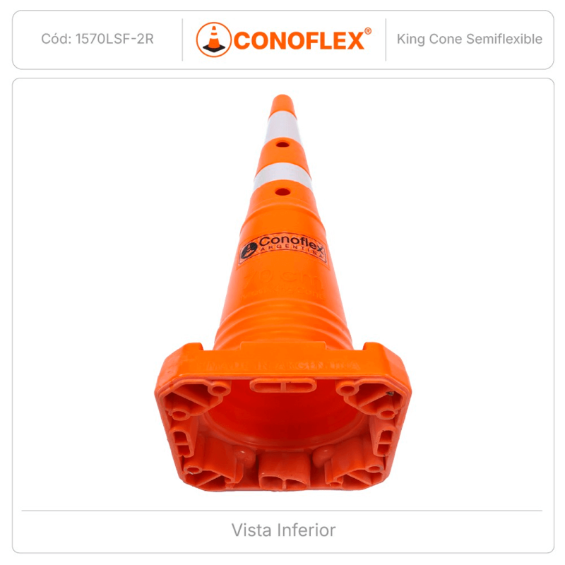 Cono de señalización vial de 70cm de altura, fabricado en material polietileno semirrígido, con filtro UV para protección solar.