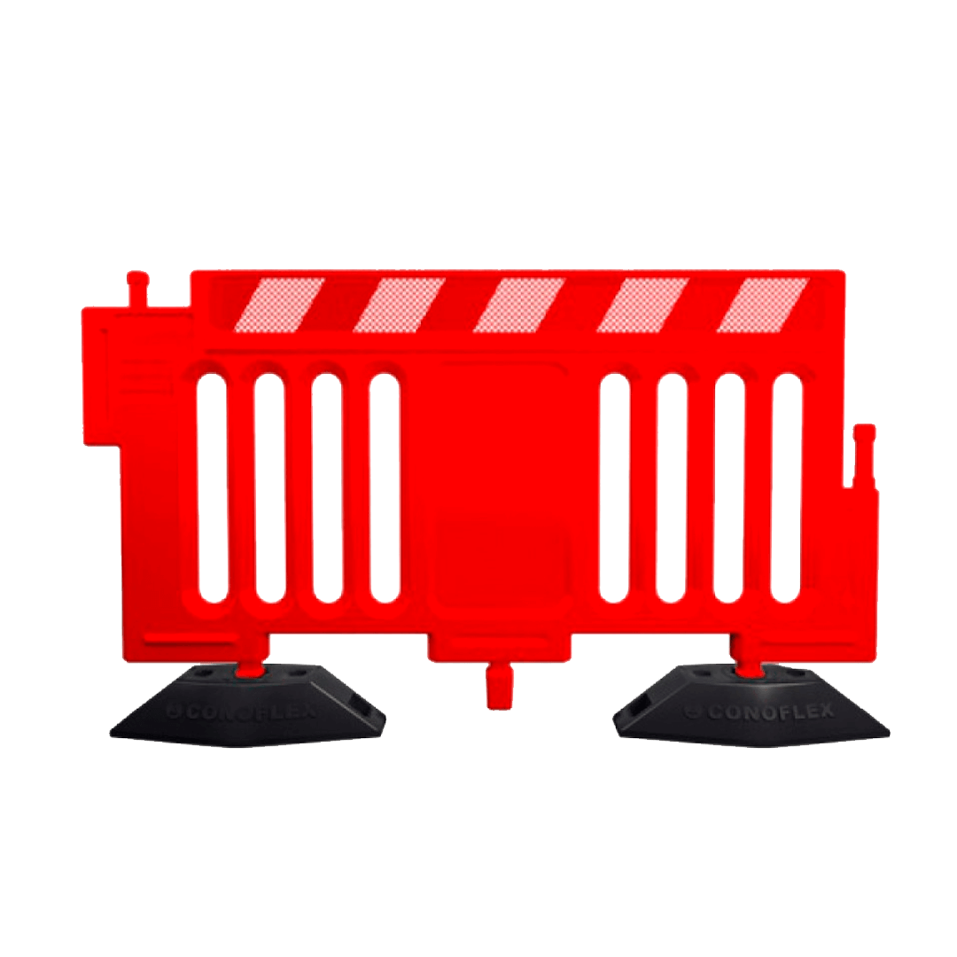 Valla plástica para seguridad vial, fabricada en material polietileno de media densidad, con filtro UV para protección solar.