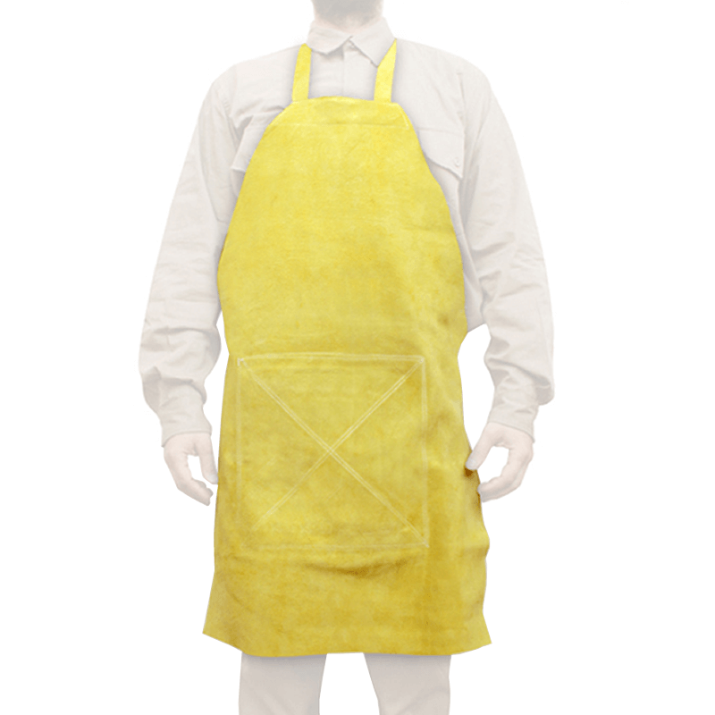 Delantal especialmente diseñado para la protección contra la soldadura y los residuos incandescentes que estas despiden. Realizado en cuero descarne (cabeza) curtido al cromo color amarillo. Espesor de 1.6mm.