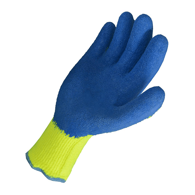 Color: tejido amarillo flúor con recubrimiento de látex en azul.