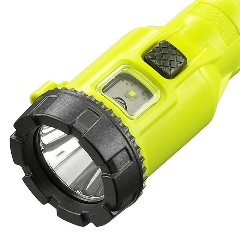 Este modelo de linterna ofrece un LED frontal con luz concentrada y un LED lateral con luz ambiente. Pueden ser usados de forma simultánea o individual. Ambos LED cuentan con interruptor individual en lados opuestos de la linterna para facilitar su activación. El cuerpo ofrece una textura de agarre superior y está construido en resina de polímero que es virtualmente indestructible, resistente a golpes, no conductora y muy ligera. Contiene un clip para cinturón con un imán en la parte superior y otro en la parte trasera.
