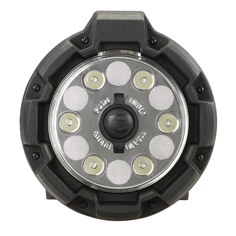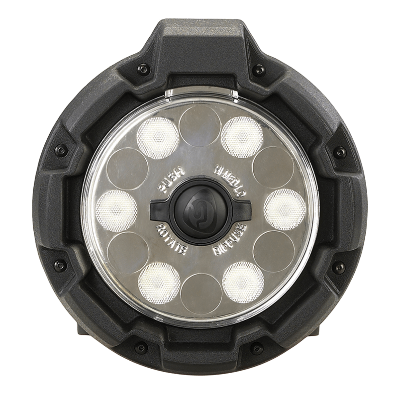 La luz de escena portátil posee configuración de difusor seleccionable para dos amplitudes de haz de luz y cuello basculante de 90° que permite direccionar el foco lumínico. Su diseño permite el uso en espacios confinados y terrenos irregulares. Los seis LED C4® y los amplios reflectores producen un patrón de proyección uniforme. El usuario puede seleccionar entre 3 potencias diferentes: