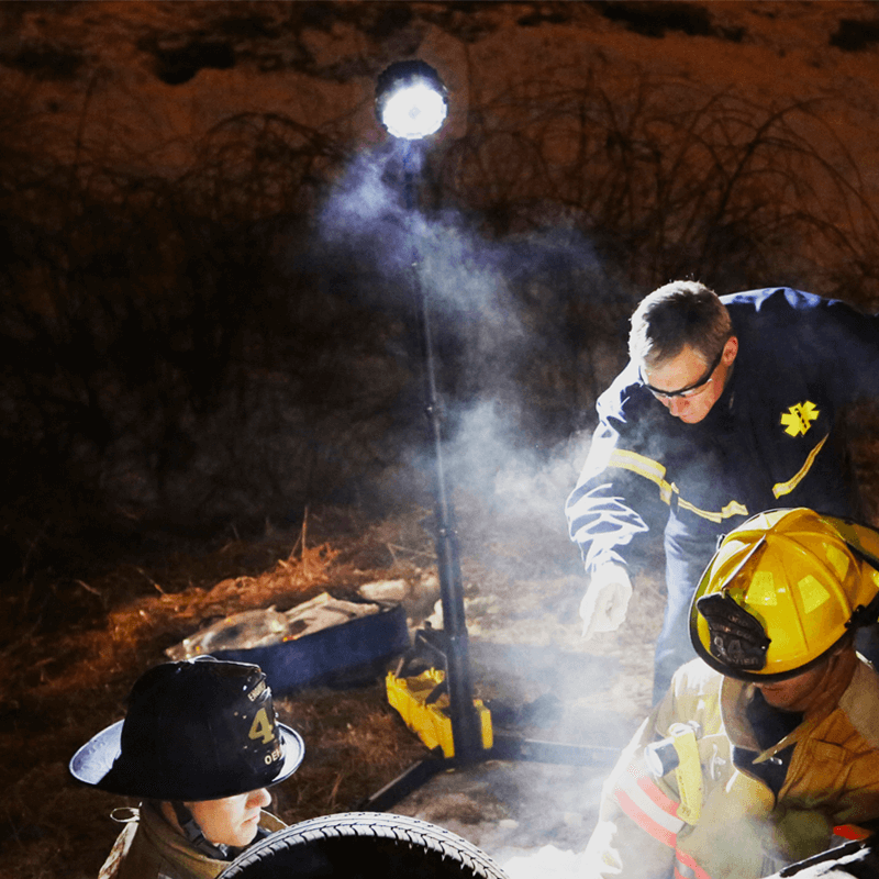 Luz de escena portátil de 5.300 lúmenes. Se monta y se guarda con rapidez y cuenta con un brazo extensible hasta 183cm de altura.