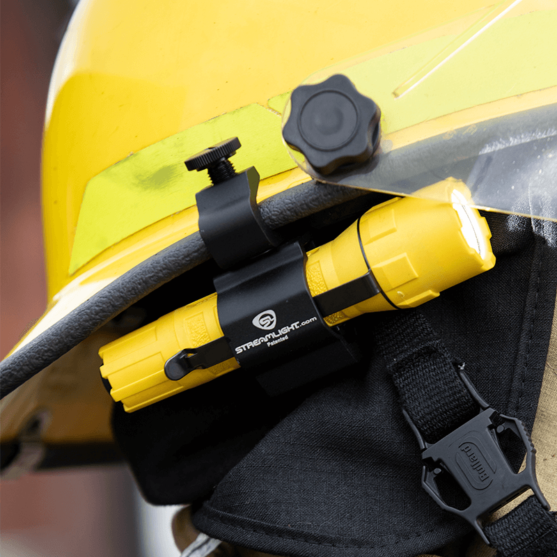 Soporte de casco duradero y confiable. Se adapta a la mayoría de cascos de bomberos. Fácil de instalar y quitar. Permite el uso manos libres de la linterna. Fabricado con materiales de alta calidad para uso en listas largas.