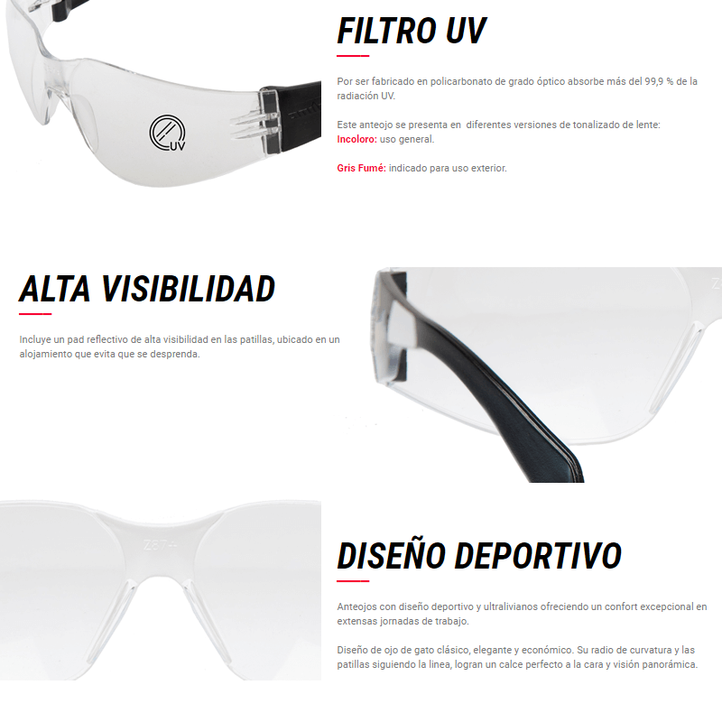 Diseñado para proteger el ojo contra golpes, impacto de partículas, polvo y chispas.