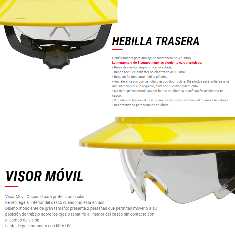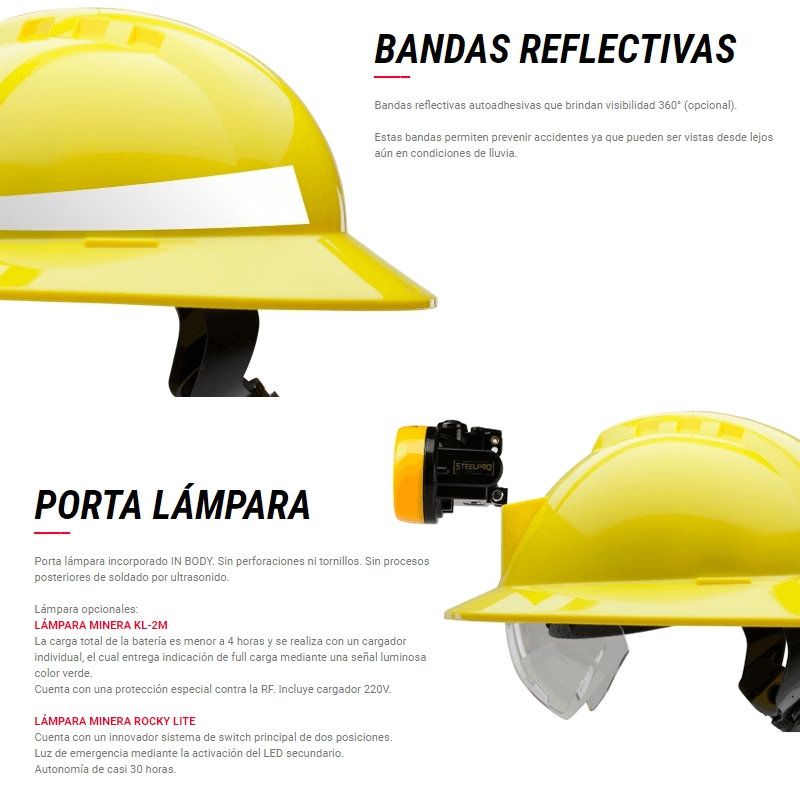 Modelo de ala completa, orientado a minería y petróleo. Ideal para utilizar en ambientes de trabajo muy exigentes. Una excelente solución de seguridad para personas que trabajan expuestos a entornos de alto riesgo. Fabricado en polietileno. Se distingue por su excelente terminación y moderno diseño. Con soporte para lámpara minera.