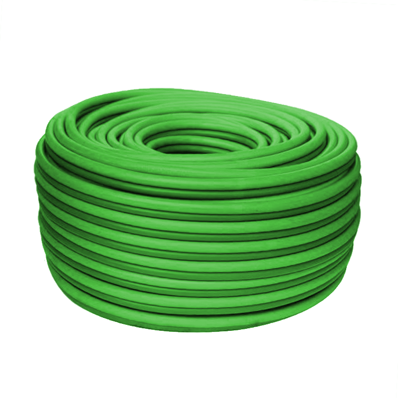Interior elaborado con PVC resistente a los gases, color negro. Exterior elaborado con PVC resistente a la llama, color verde (oxígeno). Refuerzo de fibra poliamídica en espiral y longitudinal que le confiere gran resistencia a la rotura por presión y elongación. Superficie interna calibrada. Elevada flexibilidad y fácil manejo. Autoextinguible a las llamas y chispas producidas por la soldadura. Libre de cadmio y plomo. Resistente a los agentes atmosféricos y a numerosos productos químicos. Resistente a la abrasión. Temperatura de Trabajo de -10ºC a +60ºC. No se recomienda la exposición directa a las escorias producidas por oxicorte.