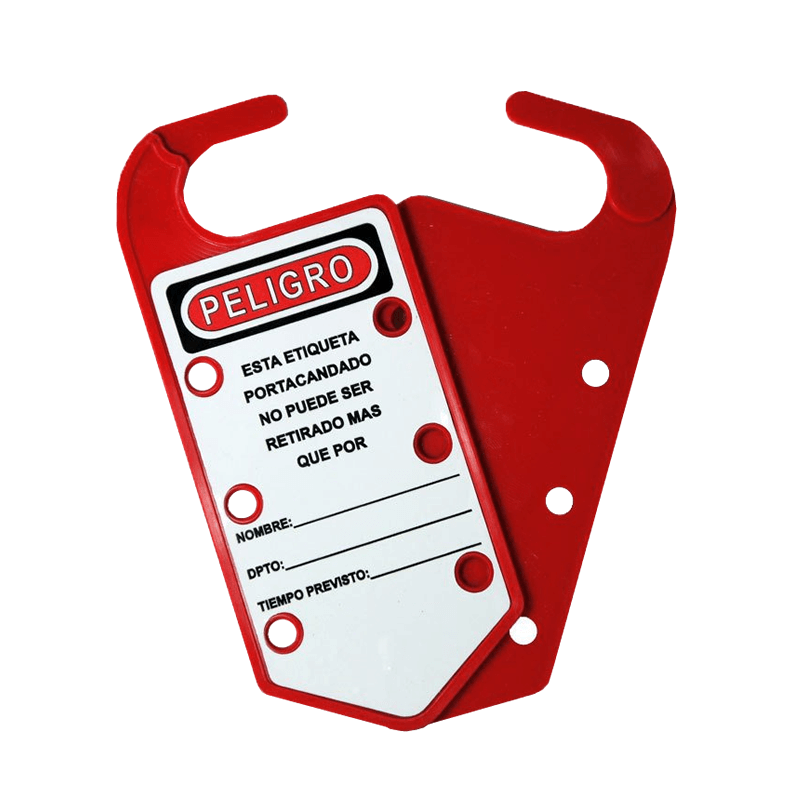 Tarjeta plástica para bloqueo con leyenda de peligro. Gracias a su material, permite escribir sobre ella el nombre del responsable y la fecha de colocación. Contiene orificios para colocar 6 candados. Sus dimensiones son 75mm de ancho, 180mm delargo, 4mm de espesor, diámetro orificios 7mm y 27mm de garganta.